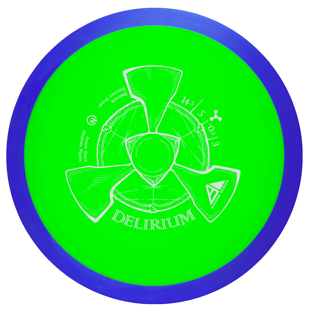 Make the competition feel delirious with the Axiom Neutron Delirium! The Neutron Delirium is an overstable distance driver designed for maximum speed and very overstable flights. The Delirium joins the Tantrum and Excite distance drivers as the overstable 24.5 MM Distance Driver making its debut in Neutron Plastic. Fans of the MVP Dimension will find a kindred spirit in the Delirium due to its capacity for high speed throws with minimal turn, even in high wind situations. Take the wind head-on with maximum distance drives from Axiom Discs Neutron Delirium Distance Driver!