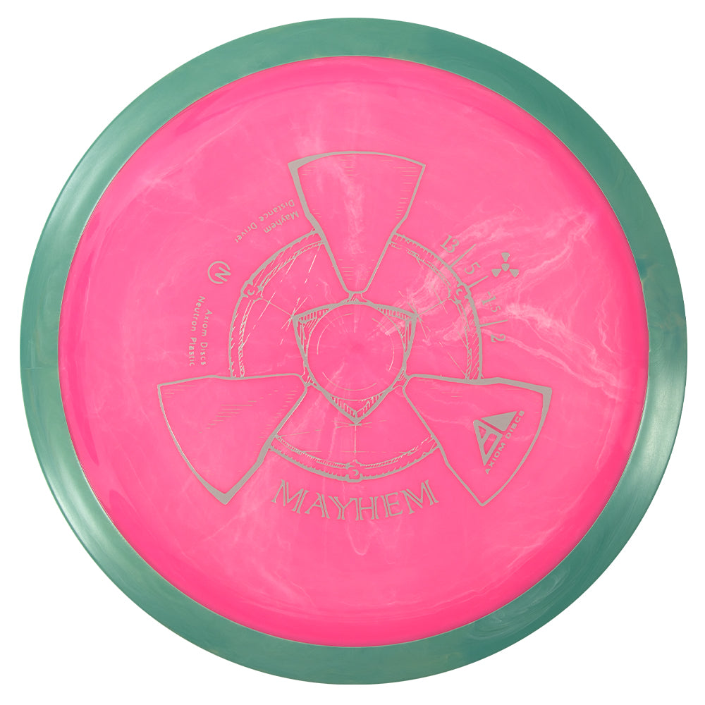 Mayhem has a responsive straight-stable profile and plenty of speed, making it a perfect workhorse driver for many advanced and expert throwers. Like the MVP 23mm class, the Mayhem has a pronounced dome to promote distance-covering glide. Mayhem is best compared to a beat MVP Octane.