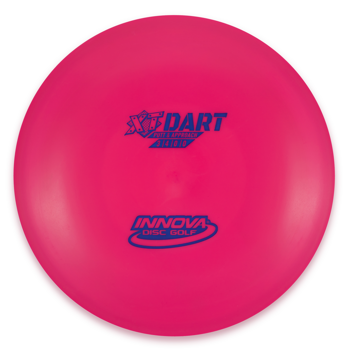 The Dart is a small diameter putter with a straight flight. The Dart is especially good for long range putts and go-for shots. It has a flight similar to our Aviar Putt & Approach but has less low speed fade and a little more range. The nice thing about this disc, besides the improved grip, is that it holds the line for a long time.