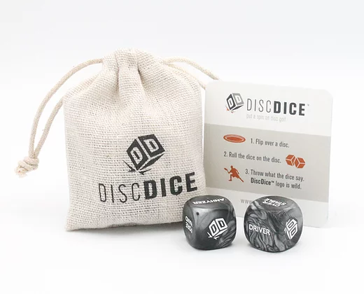 Next time you're on the tee pad, use DiscDice to randomly select which disc to throw and how to throw it. Designed BY disc golfers FOR disc golfers, this simple game is perfect for solo practice or a chaotic group round. Rolling the DiscDice logo is wild, giving you endless possibilities on the course.