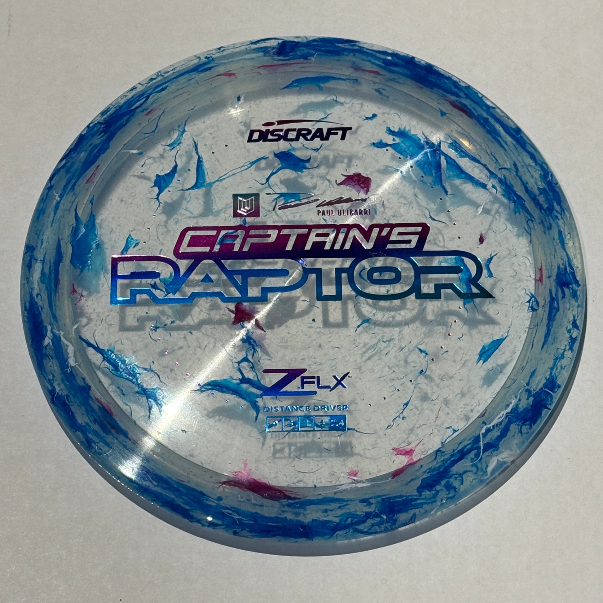 Introducing the 2023 Captain's Raptor - a testament to precision and performance. Celebrating Discraft’s Co-Captain and Icon Team Member, Paul Ulibarri, this disc is crafted in the fan favorite JB Z FLX blend. This plastic combination promises an unmatched grip and resilience, perfect for both seasoned players and newcomers into the sport. Whether you're aiming for flex shots, sidearms, or driving into the wind, the Captain's Raptor ensures confidence in every throw. As a collaboration between Paul Ulibarri and Discraft, this disc not only embodies design excellence but also stands as a symbol of commitment to enhancing the sport. Add the 2023 Captain's Raptor to your collection and experience a disc that's set to redefine disc standards.