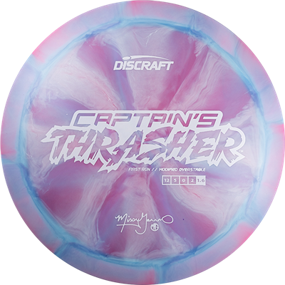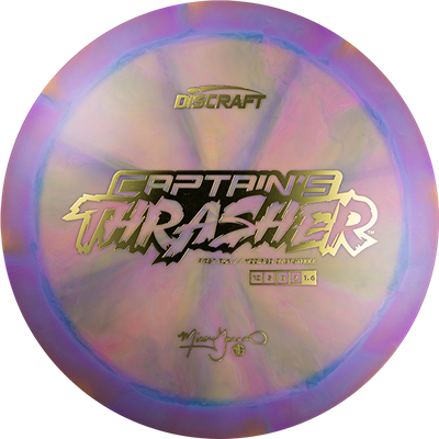 Introducing the Captain's Thrasher, a special annual release designed in collaboration with Team Discraft Co-Captain Missy Gannon. This takes the beloved Thrasher and modifies it for enhanced overstability, delivering reliable performance even in windy conditions. With its distinctive flight characteristics, the Captain's Thrasher offers seasoned players a powerful tool for achieving greater distance with precise control. Crafted to honor Missy's leadership and relentless pursuit of excellence, this disc is a must-have for enthusiasts looking to elevate their game. Embrace the spirit of a champion with the 2024 Captain’s Thrasher!