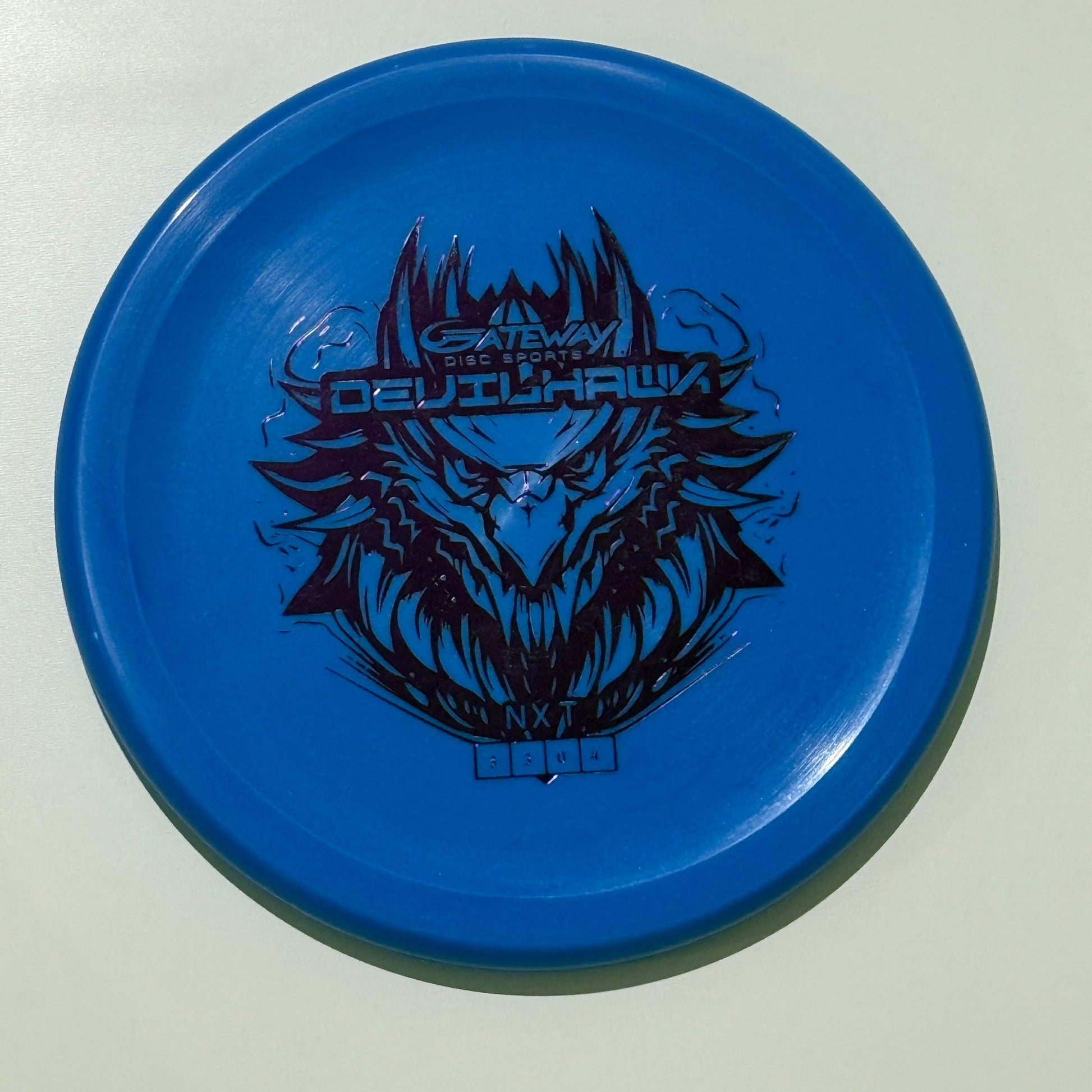 The Devilhawk is a low profile putt and approach disc with a bullet shaped nose and a bead on the wing for stability. It also has a Thumb Track design for added control and feel.