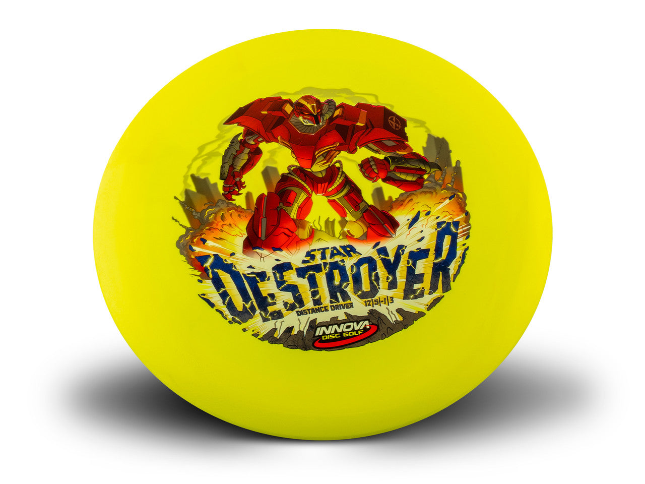 The Destroyer is a very fast stable long distance driver. This disc is much like a faster Wraith, but with a little more high and low speed stability. Great disc for sidearm throwers and those with lots of power. Can handle headwinds and throws with off axis torque. Not suggested for beginning players.