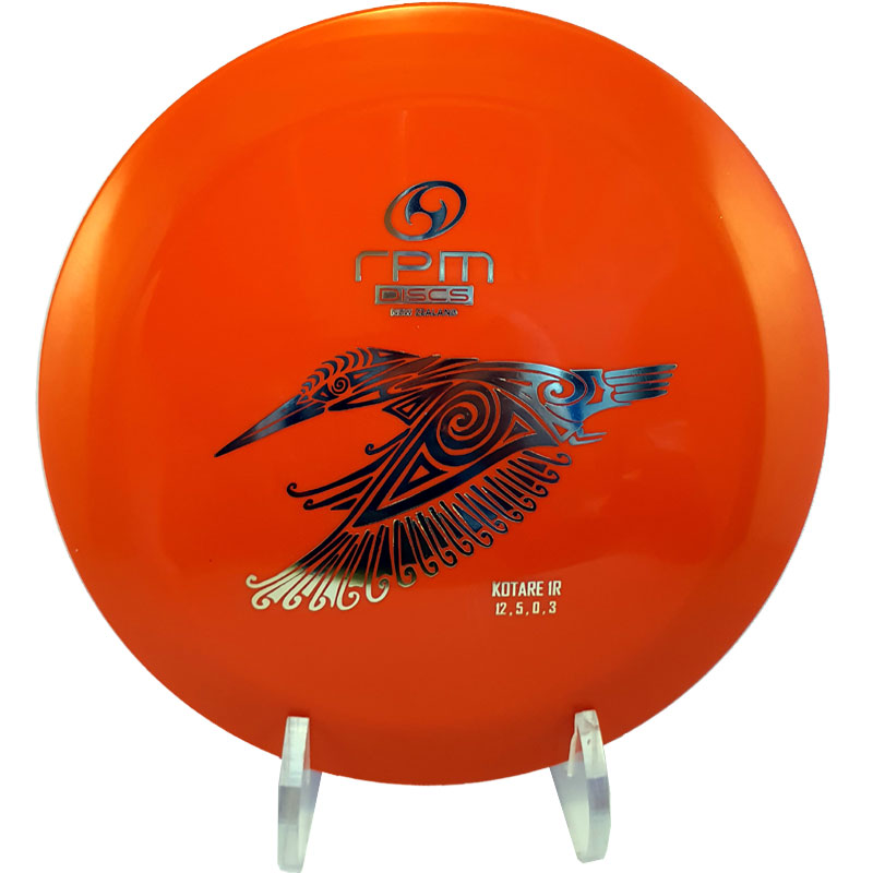 RPM has strengthened its range of drivers with the Kotare an overstable high speed driver. The ‘Kotare’ {Ko-tar-ray} will provide you with a predictable flight no matter what the conditions. High power drives will glide but not turn and have a long slow Fade, Anhysers will give a nice full flight S curve. The Kotare makes an excellent Flick disc with a slightly deeper rim than the Kahu and is PDGA credited to 176g making it a great choice for head wind drives. Please note some images are examples only and may not be available for purchase.