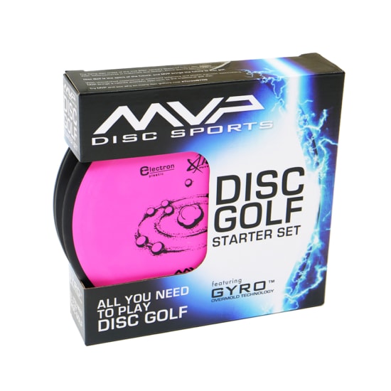 The MVP Premium Starter Set offers an easy introduction to the quality and style of MVP Disc Sports. Each boxed set includes three MVP discs — one Electron putter, and one midrange and driver in an assortment of our Premium plastics: Plasma, Neutron, and Proton. These make excellent gifts for those who have never played, as well as disc golfers who don’t know what to try from the MVP lineup and MVP fans looking for an easy booster pack. The MVP Premium Starter Set is packaged in a heavy duty cardboard box with awesome full coverage color MVP graphics, sized approximately 9” x 9” x 2”.