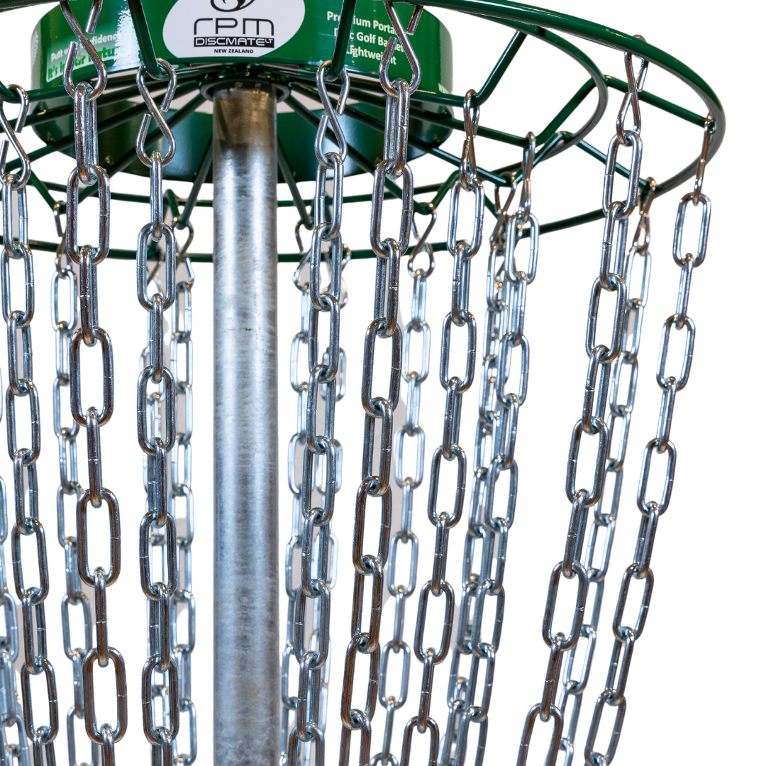 The RPM DiscMate 'Lt' is a Premium lightweight Portable Disc Golf Basket that will give you the advantage of practicing on a PDGA regulation standard basket while still being able to pack it down into a 640 x 640 x 200mm box to take on holiday with you. It also means, that if a couple of you have baskets, you can pop up courses wherever you want. Quick and easy to assemble with a 1-year parts and fabrication warranty.