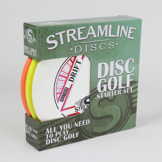 The Streamline Premium Starter Set offers an easy introduction to the quality and classic style of Streamline Discs. Each boxed set includes three Streamline discs — one Electron putter, one midrange, and driver in an assortment of our Premium plastics: Plasma Neutron, and Proton. These make excellent gifts for those who have never played, as well as disc golfers who don’t know what to try from the Streamline lineup and Streamline fans looking for an easy booster pack. The Streamline Premium Starter Set is packaged in a heavy-duty cardboard box.