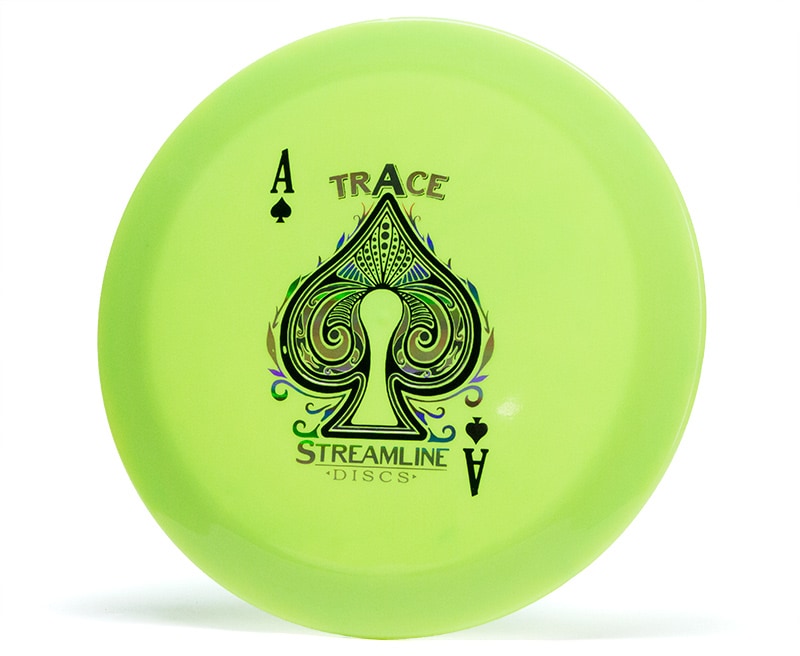 The Trace has a manageable 21mm rim width and straight-stable flight that places it squarely in the Speed 11 Power Straight market. The Trace’s moderate dome is smooth and even, with a shoulder and depth that yields excellent glide. Most players will be able to stand the Trace up on a hyzerflip, but the Trace will soak up plenty of power before being pushed off its straight line. Its ending fade is smooth but dependable for easy ranging.